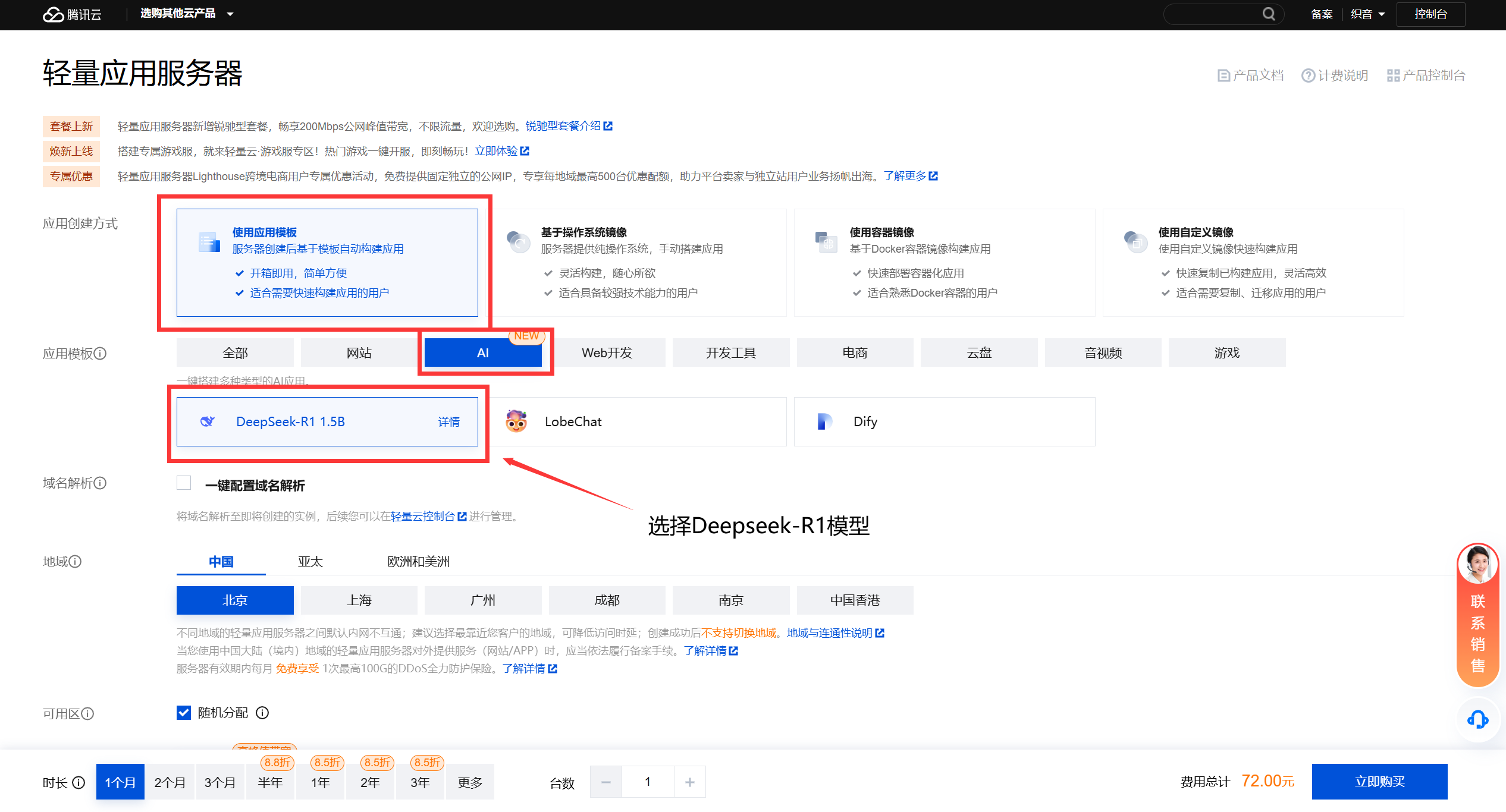 镜像选择:务必勾选「DeepSeek-R1 1.5B」模板