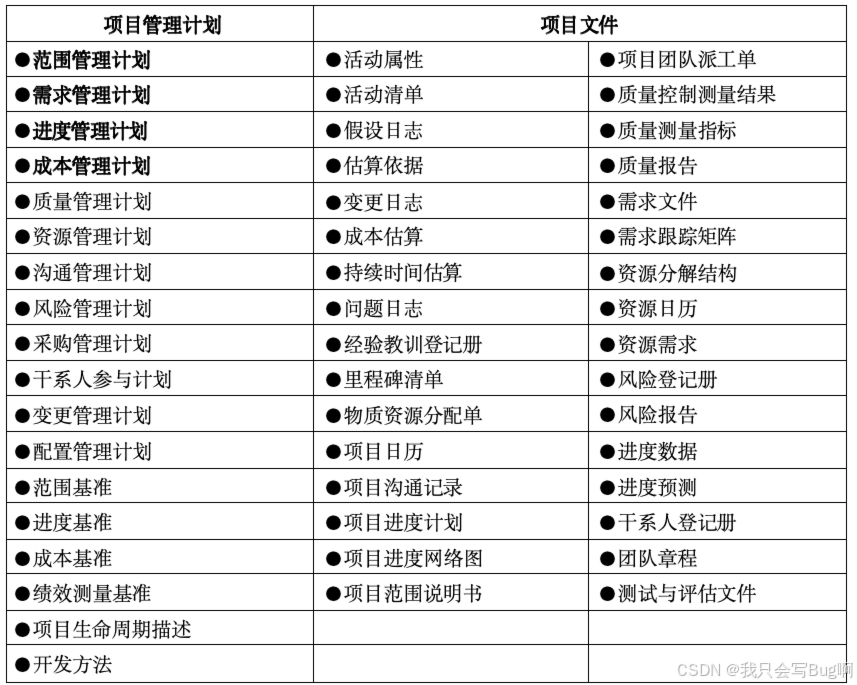 范围基准是经过批准的范围说明书、 WBS 和相应的WBS 词 典,只有通过正式的变更控制程序才能 进行变更,它被用作比较的基础。范围基准是项目管理计划的组成部分