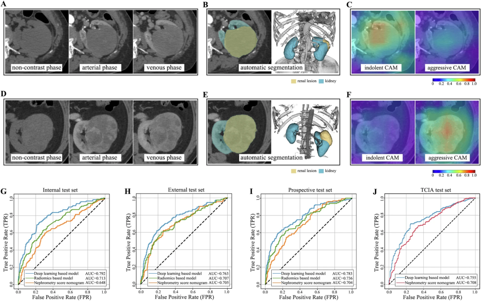 随着医学影像技术的发展,医生能发现越来越多的肾脏肿块。但现有的诊断方法各有不足:活检会带来创伤和风险,单纯靠影像学检查又难以准确判断某些特殊类型的肿瘤。针对这一临床难题,研究团队开发了两个AI诊断系统:一个用来判断肿瘤是良性还是恶性,另一个用来评估肿瘤的危险程度。这些AI系统在多家医院的验证中都显示出优异的表现,不仅准确率超过了传统评分方法,还能辅助医生做出更准确的诊断。研究发现这种AI评估方法能有效预测患者预后,为临床治疗决策提供重要参考。