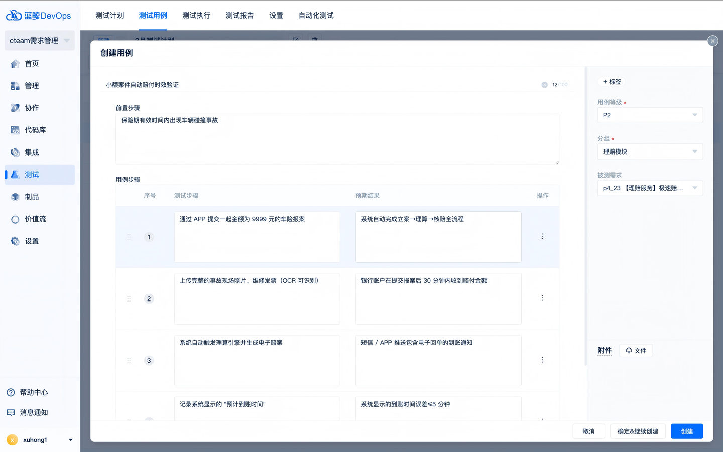 建立全组织统一的测试标准,使用结构化用例模板确保需求覆盖度、场景完整性和执行规范性,降低测试遗漏风险,进一步实现“需求-用例-缺陷”的闭环管理。