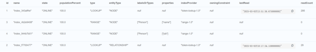 n.propertyName_n])常用: CREATE INDEX FOR (p:Person) ON (p.name);