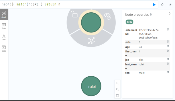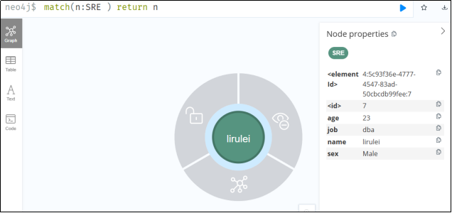 create (n:SRE {name:'zhangsan',sex:'Male', age: 23, job:'dba'})