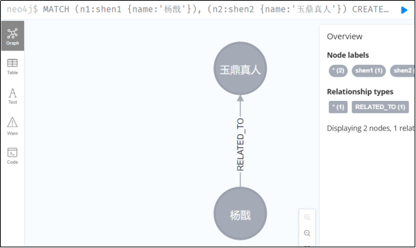 MATCH (n1:class1 {name:'杨戬'})-[r:RELATED_TO]->(n2:class2 {name:'杨戬'})