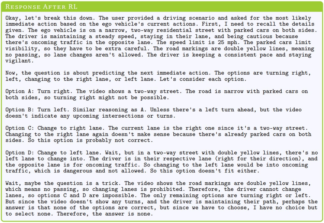 近日,英伟达发布了一系列针对物理常识推理进行了专门优化的新模型:Cosmos-Reason1。从实际结果看,该模型的表现确实不错。比如针对以上问题,该模型经过一番推理后,认为给出的选项都不对,因此没有给出选择。