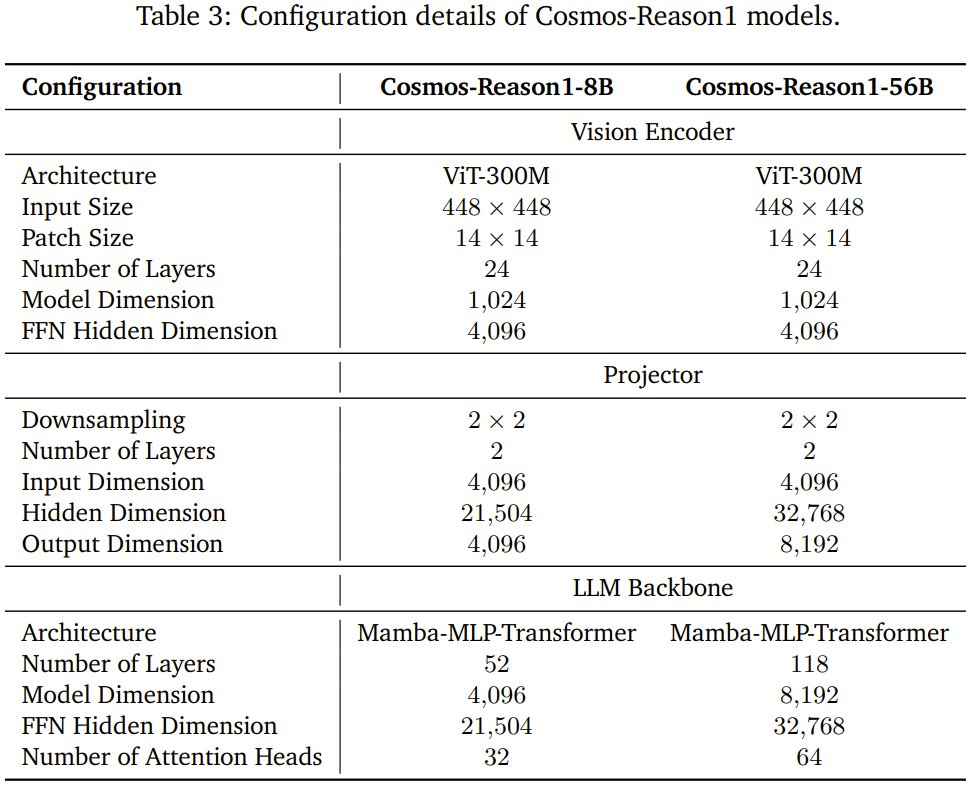 目前他们已经发布了两个多模态 LLM:Cosmos-Reason1-8B 和 Cosmos-Reason1-56B。