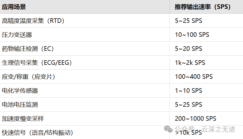 使用 10~50 SPS 是最佳权衡(功耗低、精度高)