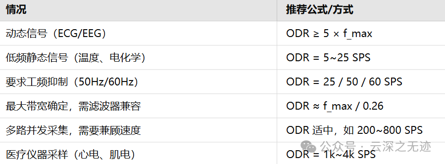 更高的 ODR 可以用于后期滤波、平均、动态追踪。特别适合噪声多、波形要求高的系统。