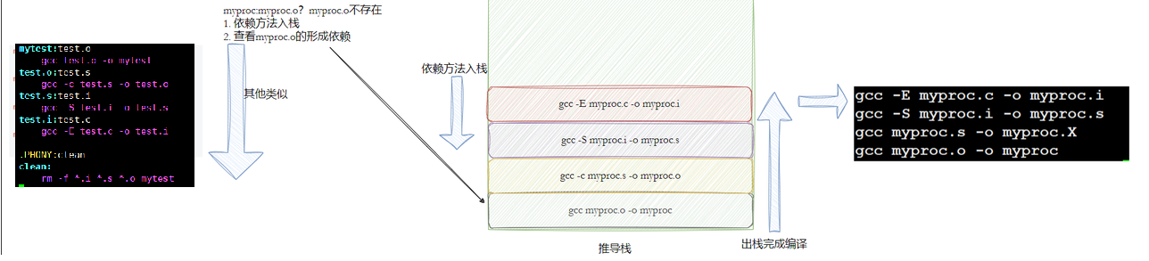 例如,若目标依赖 .o 文件,则 make 会先编译这些 .o 文件,再链接生成最终目标。