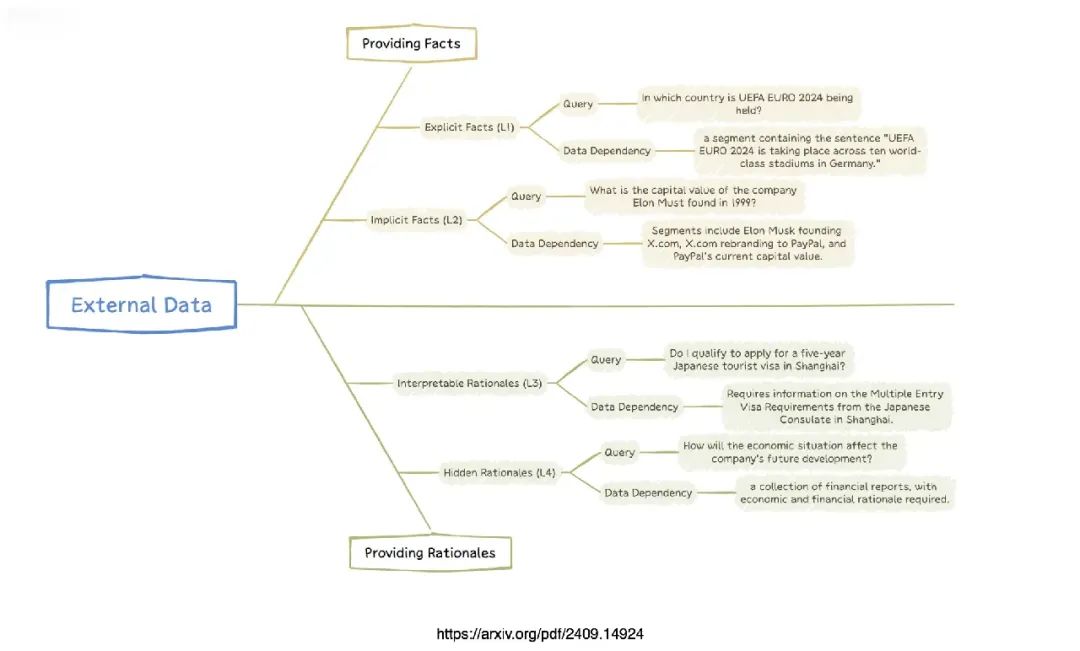 通过前面的例子可以看出,直接查询明确事实的任务(比如查询签证资格需要参考领事馆的官方指南,属于 L3)与需要依赖隐含推理的任务(比如分析公司未来发展的经济影响,需要结合财务报告和经济趋势,属于 L4)是有明显区别的。