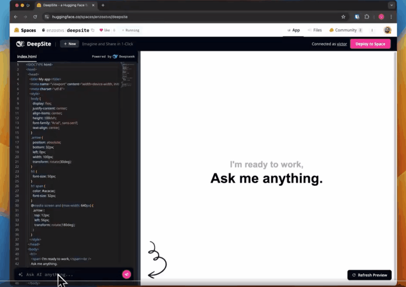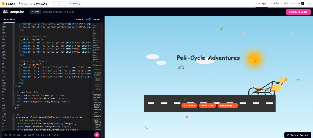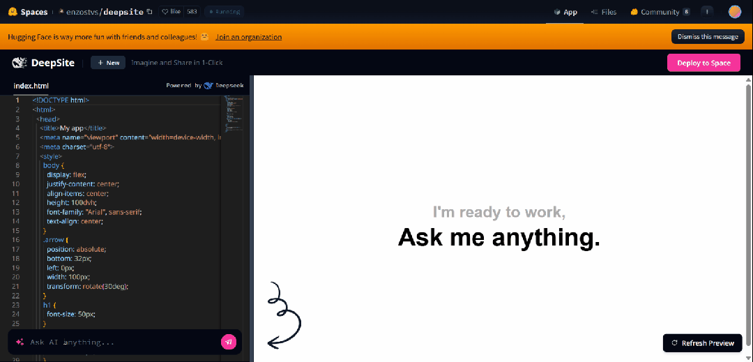 看到这,大家可能已经发现了一个有趣的事情,DeepSite 应用程序和 DeepSeek 模型都是完全开源的,开源界联手简直无敌了。