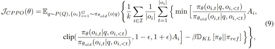 要了解 CPPO,首先必须知道 GRPO,其公式如下: