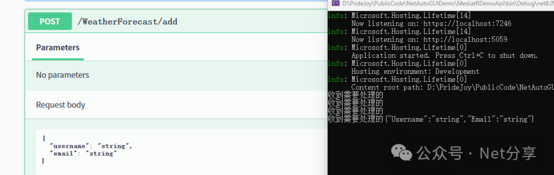 MediatR 支持在处理请求之前或之后执行额外的行为。例如,添加日志记录行为:
