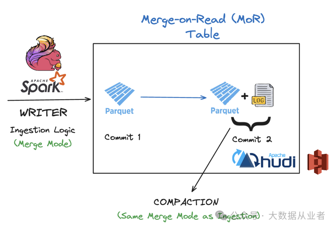 读时合并(MoR)表通常会将所有传入的更新存储到一个与基础数据文件分开的额外数据文件中。因此,它们需要额外的操作开销,以便在进行行级更新时合并这两个文件。