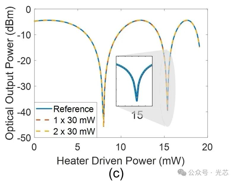 本文调制器配置基于热光相移调谐,需要额外驱动电功率,会引入热串扰。为降低热串扰,采用undercut结构热移相器,测试表明其热效率为3.68mW/π,对耦合比的串扰影响可忽略。此外,还可通过设计制造特定参数电路,或采用相变材料、MEMS、液晶材料等创新方法实现低功耗、低热串扰的光相位调谐。 ◆ 结论