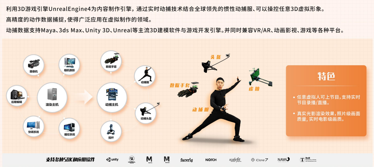 光学动作捕捉系统主要由红外光摄像机、被动或主动标记以及动作捕捉分析软件组成。红外光摄像机对运动场景进行高频率捕捉和记录,被动或主动标记被贴在人体的特定关节部位,这些标记可以反射或者发出红外光,使得摄像机能够精确地捕捉和跟踪它们的位置。通过对这些标记位置的实时跟踪,系统能够获取人体的动作信息,并将其转化为数字信号,经过分析软件处理后,实现对数字人动作的精确驱动。
