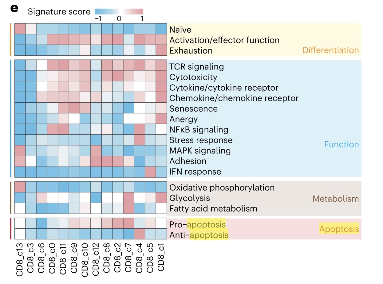 这篇推文就到此结束,用这篇顶刊收集到的基因集对CD8T细胞功能进行评分,可以用到自己的分析当中去。
