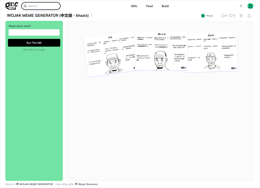一切,都因为在Glif这个AI产品上,创始人fabian用几分钟的时间,搭了一个meme梗图生成器。