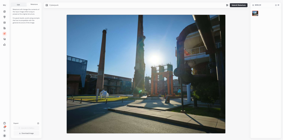 但看到Midjourney的这个功能,我就想给这张图换一个画风,先来一个赛博朋克的科技风不过分吧。