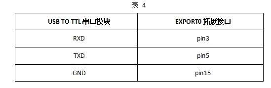 两个USB TO TTL串口模块与评估底板EXPORT0拓展口的UART2和UART3串口连接方法如下表所示。