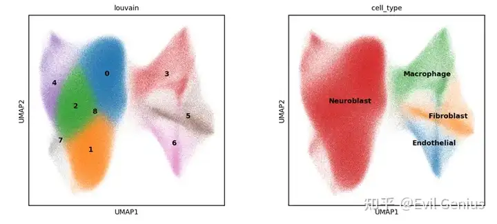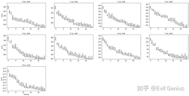 sc.tl.rank_genes_groups(adata, 'louvain', method='wilcoxon', key_added = "wilcoxon")