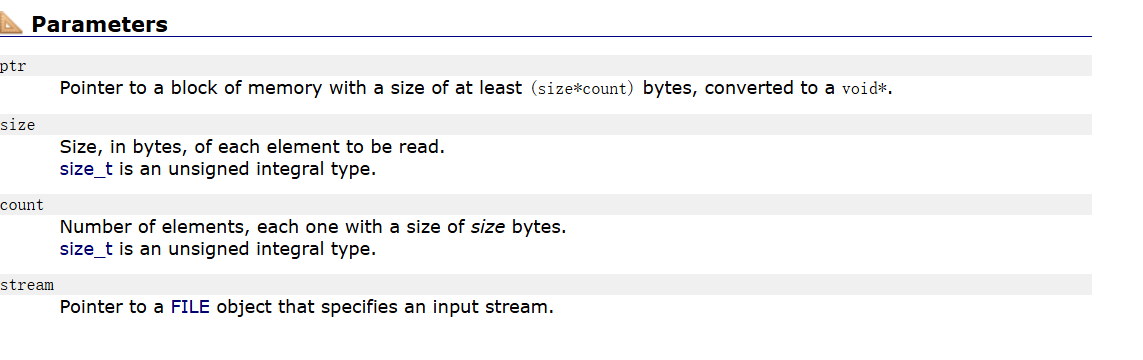 size_t fread ( void * ptr, size_t size, size_t count, FILE * stream );
