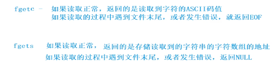 //fgetc 当读取失败的时候或者遇到⽂件结束的时候,都会返回EOF