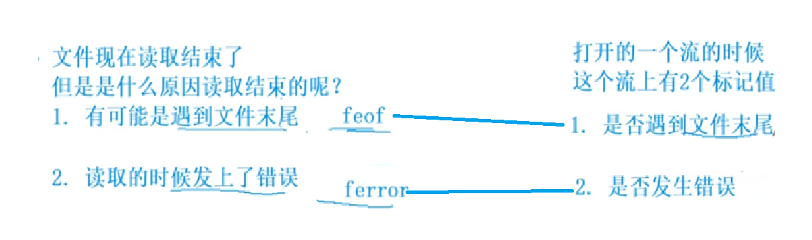 注意:在文件读取过程中,不能用feof函数的返回值直接来判断文件的是否结束