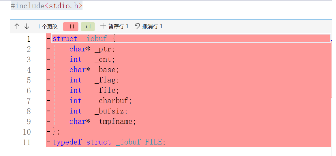 我们可以在编译环境提供的 stdio.h 头⽂件中有以下的⽂件类型申明: