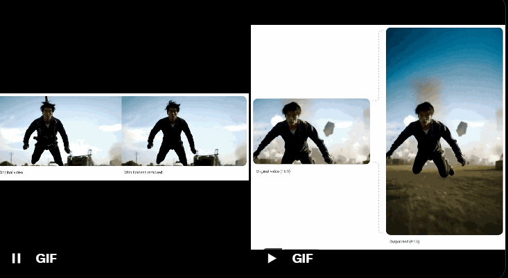 - 抠图+扩图 (Inpainting + Outpainting): 视频里不想要的 logo、背景干扰物,直接抹掉,效果自然。或者把现有视频画面向外扩展,适配不同屏幕尺寸。