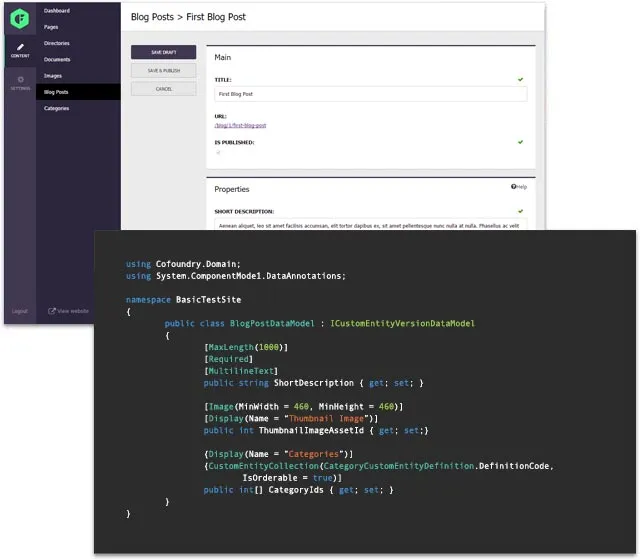 Cofoundry是一个开源(MIT license)且免费的 .NET CMS 和应用程序框架,专注于代码优先的开发模式、无侵入的集成方式、可扩展且灵活的架构以及简单且用户友好的内容管理。