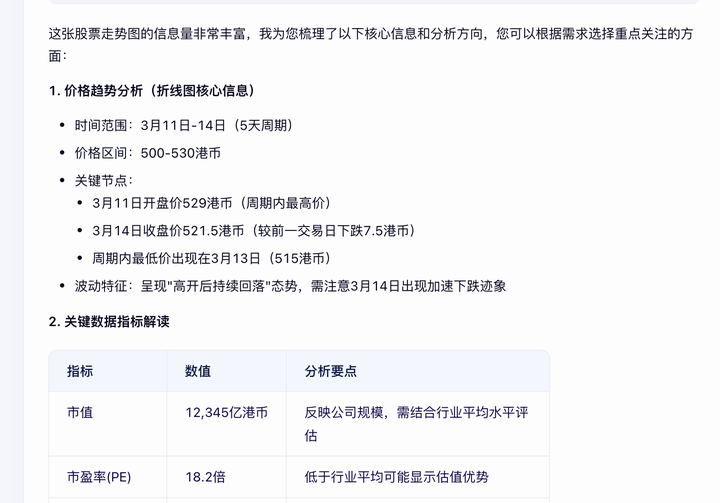 比如我这边上传了一张股票图让他进行识别:腾讯最近的股价