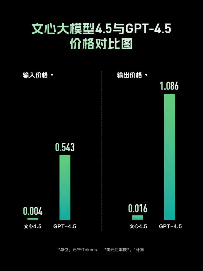 在整体的 API 价格调用中,文心大模型 4.5 的输入输出价格低至 0.02 每千 token。相比之下,GPT-4.5 模型的API 调用价格需要 1.6 每千 token。在价格优势上确实可以比 GPT4.5 便宜多了。