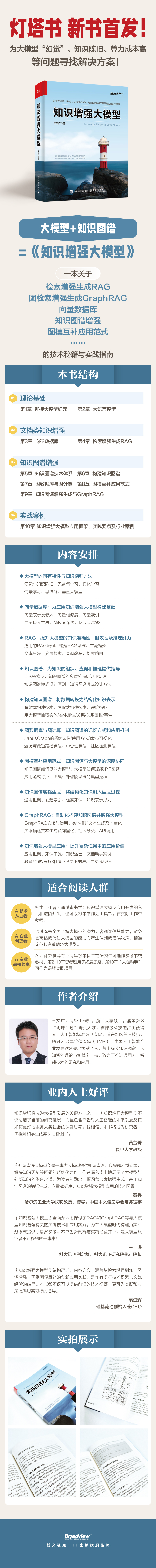RAG系列文章的核心观点来自于“灯塔书”《知识增强大模型》第4章《检索增强生成》的内容,这些内容是对书中内容进行补充和概览。书中以45页的篇幅详细介绍了RAG的概念、理论、构建RAG系统的流程,基于DIfy开源框架构建RAG系统的实战、关于RAG的最佳实践指南以及其他一些主流的可以用于构建RAG系统框架的介绍等等。内容非常丰富,实例可以立即上手,思考题可以引导启发,适合于教学和自学。