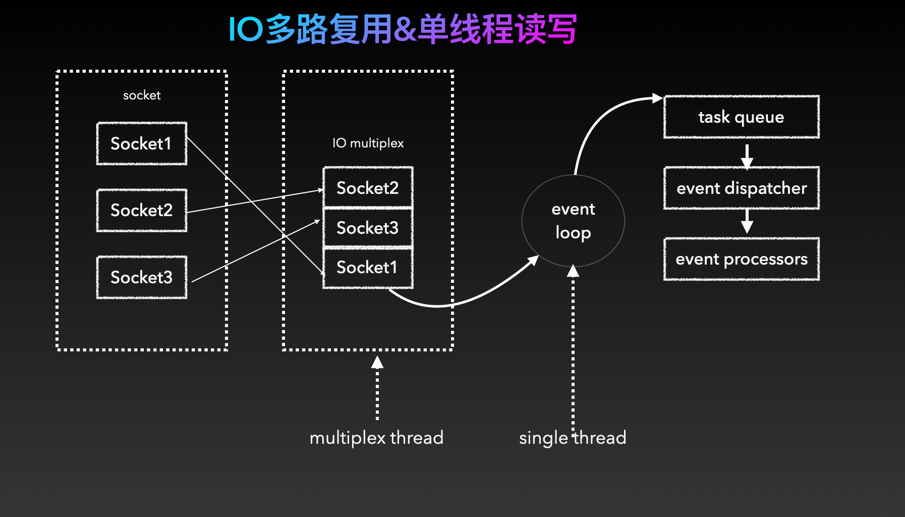 多个套接字通过io多路复用汇总到一个单线程事件循环中,所以redis不需要为每个事件创建单独的线程,IO多路复用可以实现对客户端连接的高效管理,从而实现在单线程在依旧可以处理成千上万的并发请求。