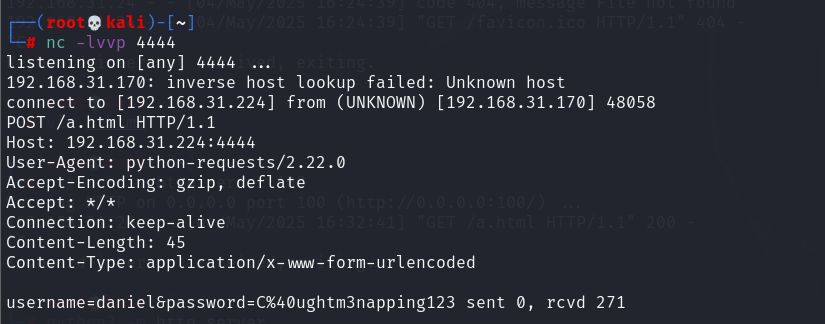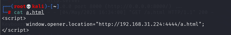 这个先写一个钓鱼页面让别人访问的时候留下他的账号密码。然后给靶机让他访问,在监听一下对应的端口,这样就可以拿到靶机用户的账号密码。拿到之后去url解密一下就可以了。
