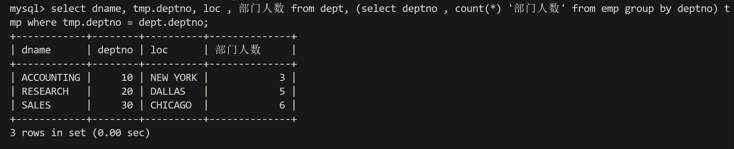(select count(*) mycnt, deptno from EMP group by deptno) tmp