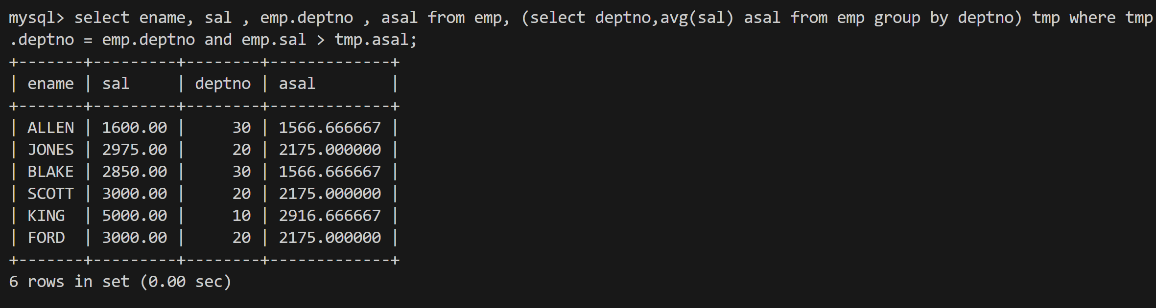 where EMP.sal > tmp.asal and EMP.deptno=tmp.dt;