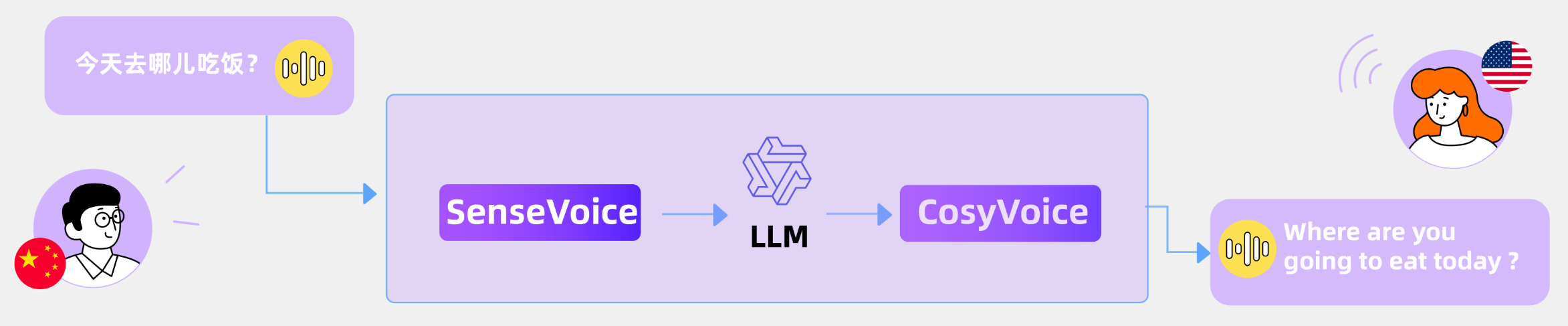 整合这两个项目,即可轻松实现语音到语音翻译(S2ST)。例如,可模仿中文语调进行中文转英文的语音翻译。