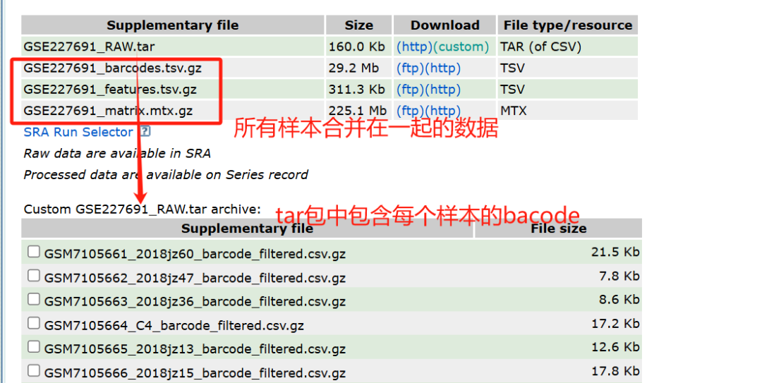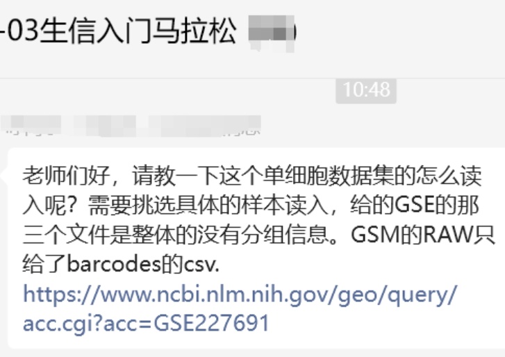 老师们好,请教一下这个单细胞数据集的怎么读入呢?需要挑选具体的样本读入,给的GSE的那三个文件是整体的没有分组信息。GSM的RAW只给了barcodes的csv.