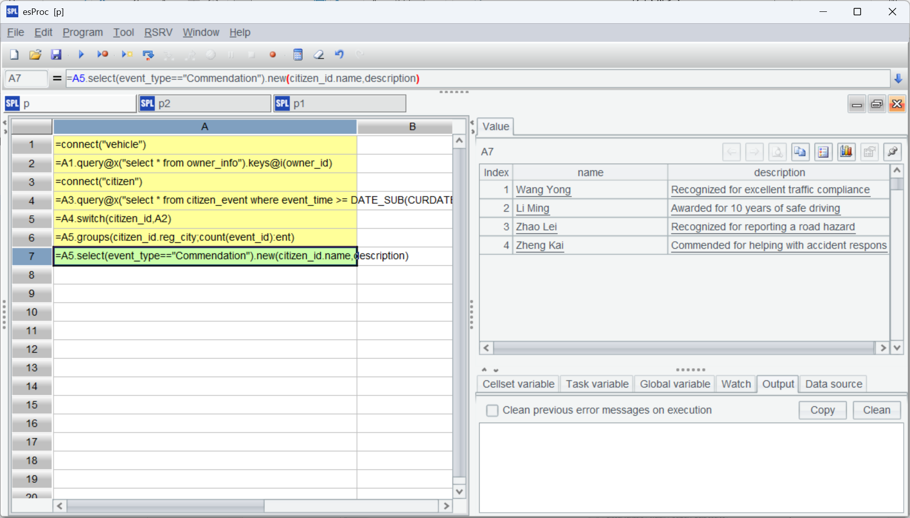 这时可以使用 esProc 提供的管道机制:
