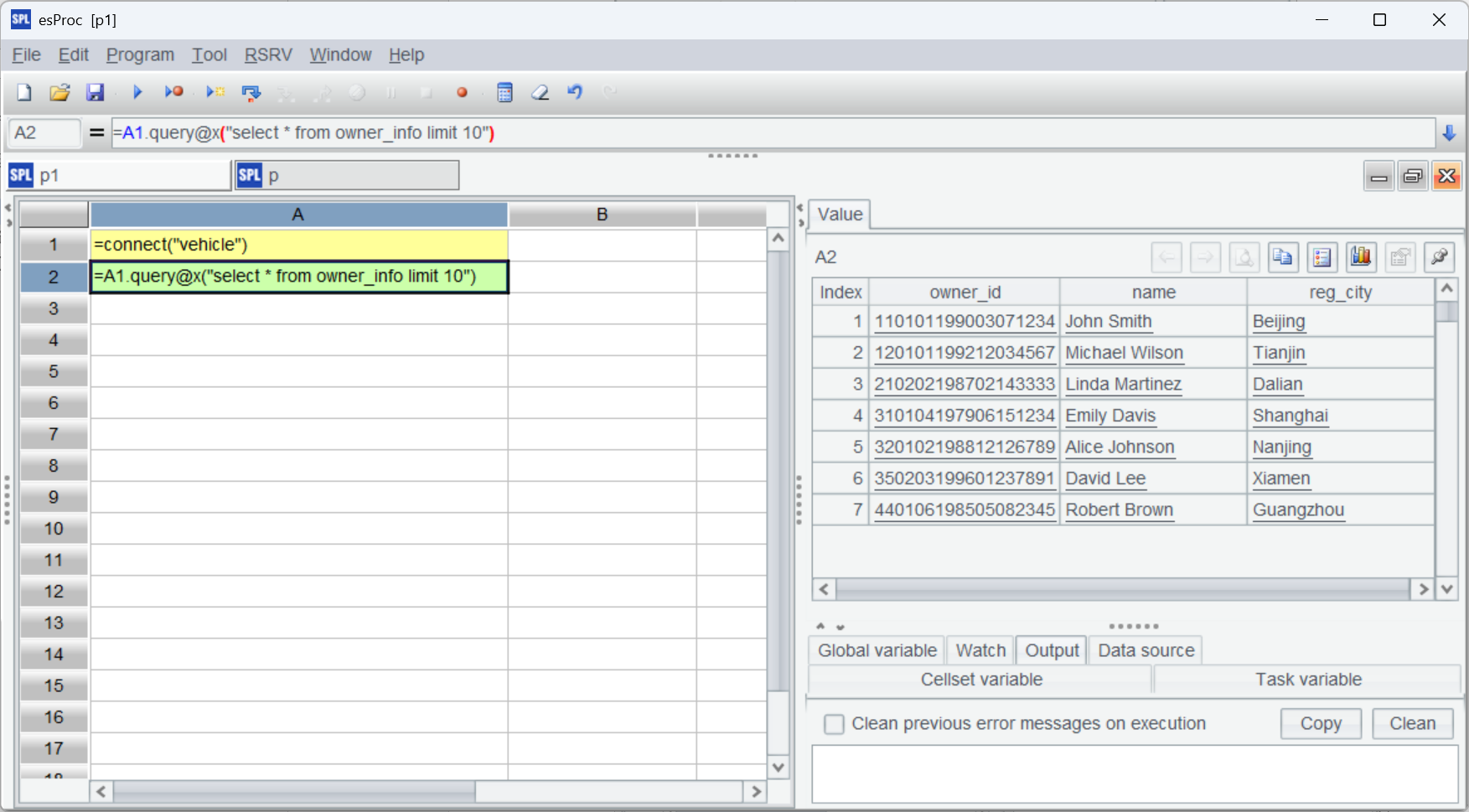 A2 从 vehicle 库查询车主信息,query@x 表示数据全部加载内存后关闭数据库连接,使用 keys@i 设置主键并建立索引,通常事实表会远大于维表,这个索引会被复用很多次,能加快计算速度。