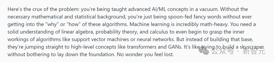 在他看来,很多课程都抛弃了关于ML和深度学习的基础概念,这很危险。