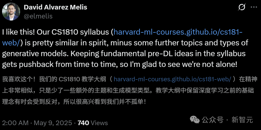 一位哈佛的助理教授说,自己非常喜欢这个教学大纲,和哈佛的CS1810课程大纲基本类似,只是少了一些进阶主题和生成模型的类型。