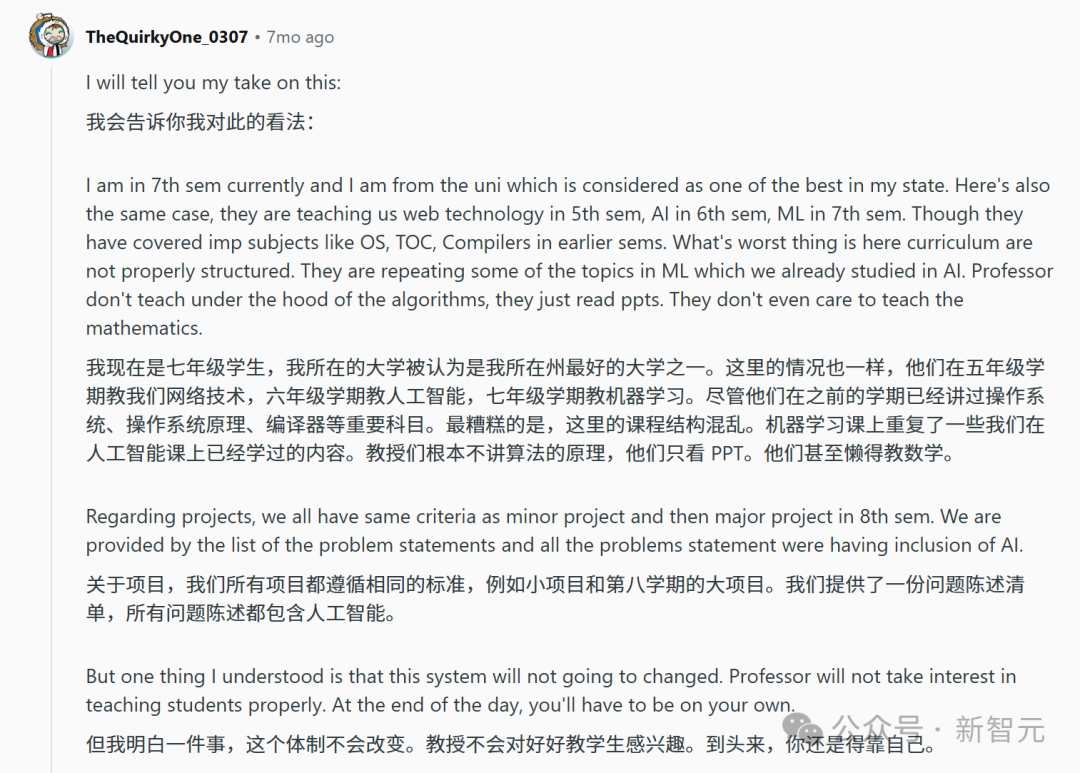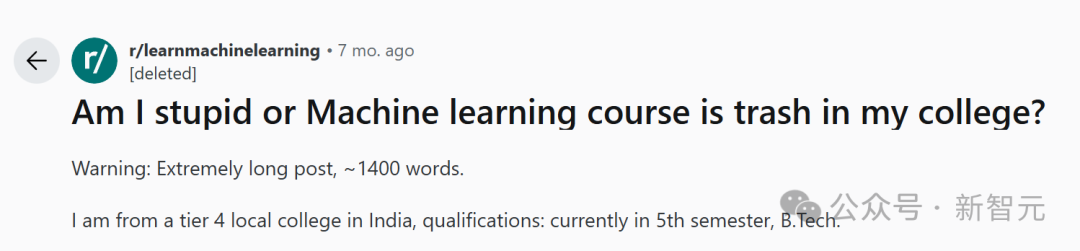 有趣的是,就在去年,一位印度学生曾在reddit上发帖,抱怨学校的机器学习课程太垃圾。