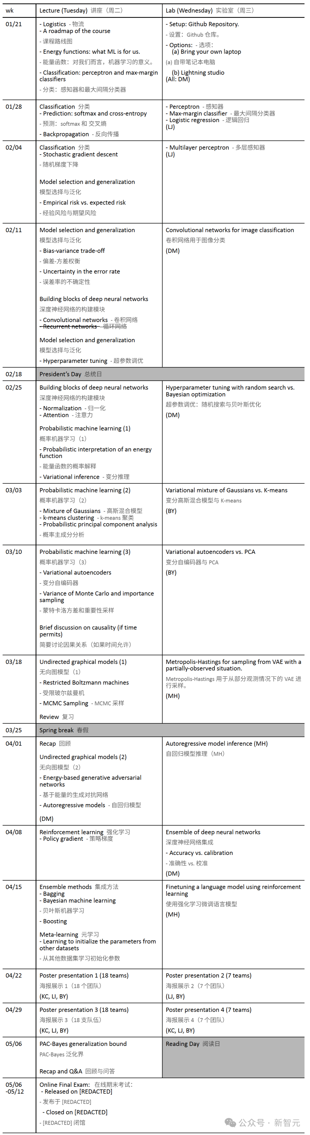 正如此前提到的助理教授所说,这份课程大纲中保留了很多深度学习前期的基础概念,这在当今竟然已经不多见了。