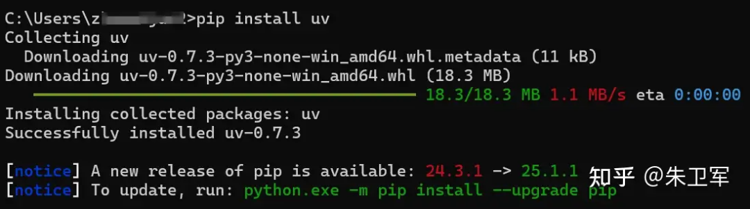 uv能实现pip的所有功能,语法一致 ,而且比pip安装包的速度更快。