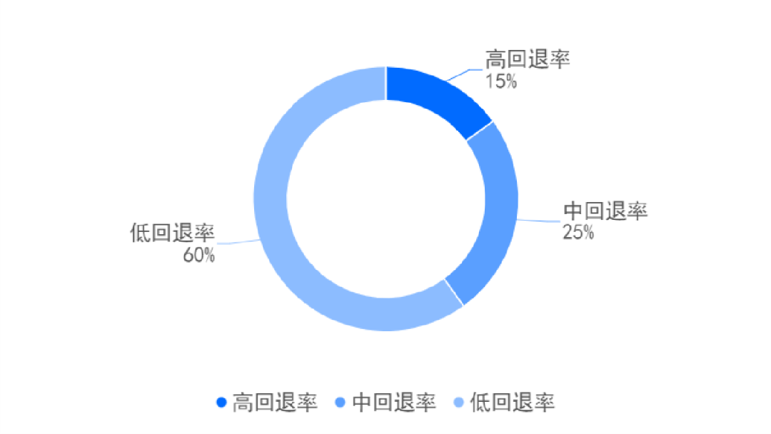 从图表中可以看出,高回退率的变更占15%,中回退率的占25%,而低回退率占60%。尽管大部分变更回退率较低,但仍然需要关注高回退率的变更,进行原因分析和改进。