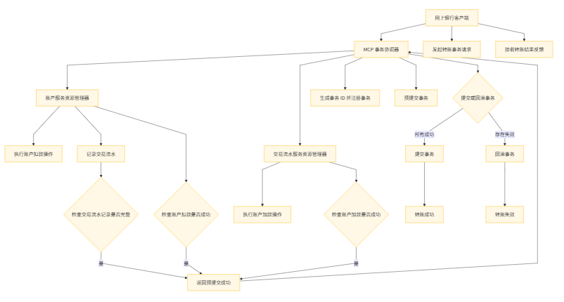 以下是基于 MCP 协议的金融转账事务处理流程: