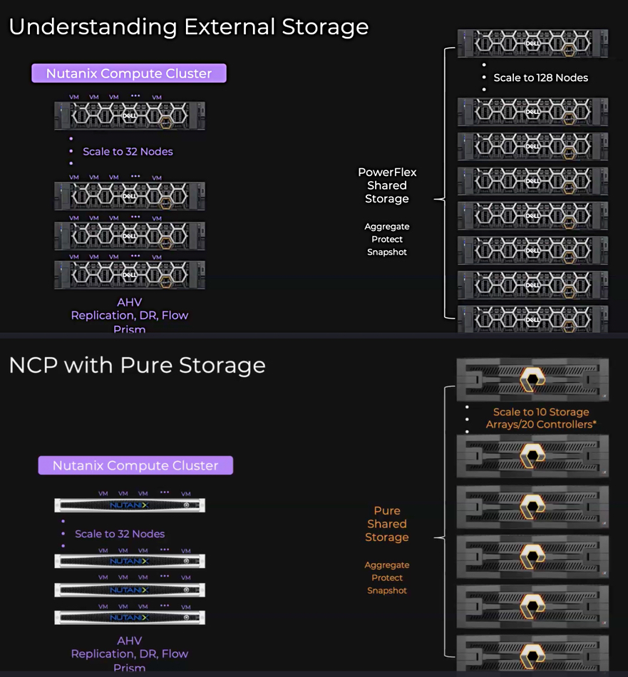支持外部存储标志着 Nutanix 战略的重大演变,解决了那些拥有大量现有存储投资或对性能和可扩展性有特定要求的客户的需求,这些需求可能无法通过纯粹的 HCI 架构得到最佳满足。与 Dell 和 Pure Storage 的合作,为客户提供了来自领先存储供应商的经过验证和集成的解决方案,提供了更大的选择和灵活性。这也使 Nutanix 能够更好地在那些偏好分离计算和存储模型的环境中竞争。