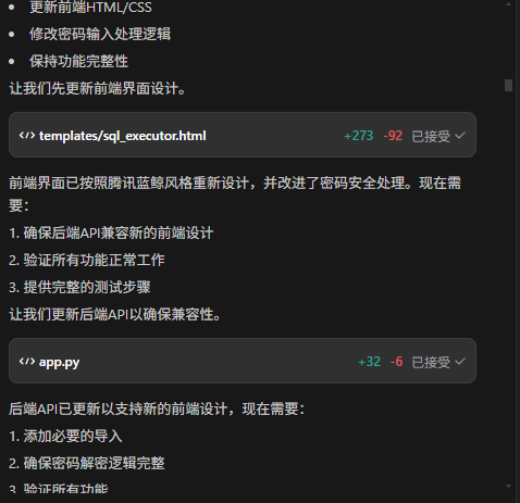 通过利用腾讯 CodeBuddy 的代码生成与纠错功能,我们成功地构建了一个基于 MySQL 的数据库自动化运维平台的核心功能模块。在开发过程中,CodeBuddy 极大地提高了编码效率,减少了错误发生的概率,使得开发者能够更加专注于平台逻辑与业务需求的实现。随着技术的不断发展,数据库自动化运维平台将不断完善,结合更多先进的技术(如人工智能预测性维护、自动化优化建议等),为企业的数据库管理提供更强大、更智能的支持。腾讯 CodeBuddy 作为开发过程中的得力工具,也将持续进化,为开发者带来更多的便利与惊喜,推动开发与运维领域的不断进步。